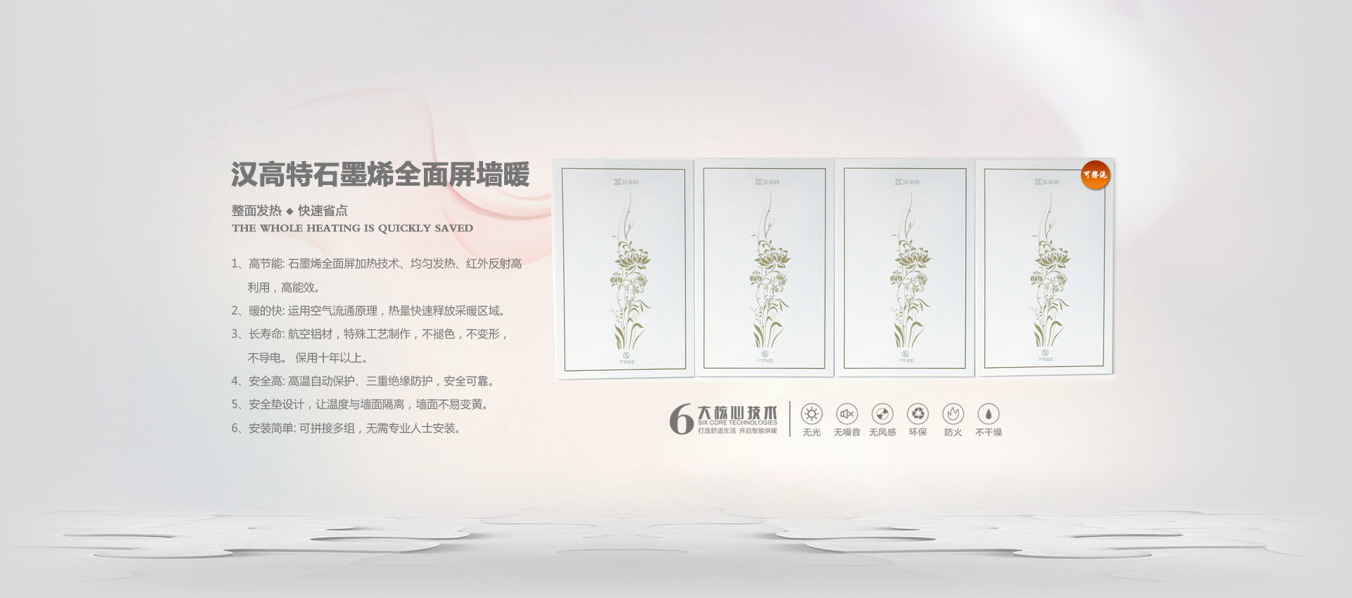漢高特自主研發的新型石墨烯電地暖、石墨烯電采暖、電熱膜電地暖、碳纖維電暖、碳晶墻暖畫、電地暖廠家加盟、電熱膜工廠,采用新設計、新材料在行業內首創了耐強酸、耐強堿、防火阻燃、防水防潮等特點。產品暢銷江蘇、四川、甘肅、山西、河北、河南、內蒙、新疆等地。